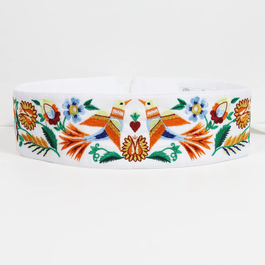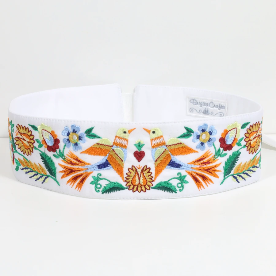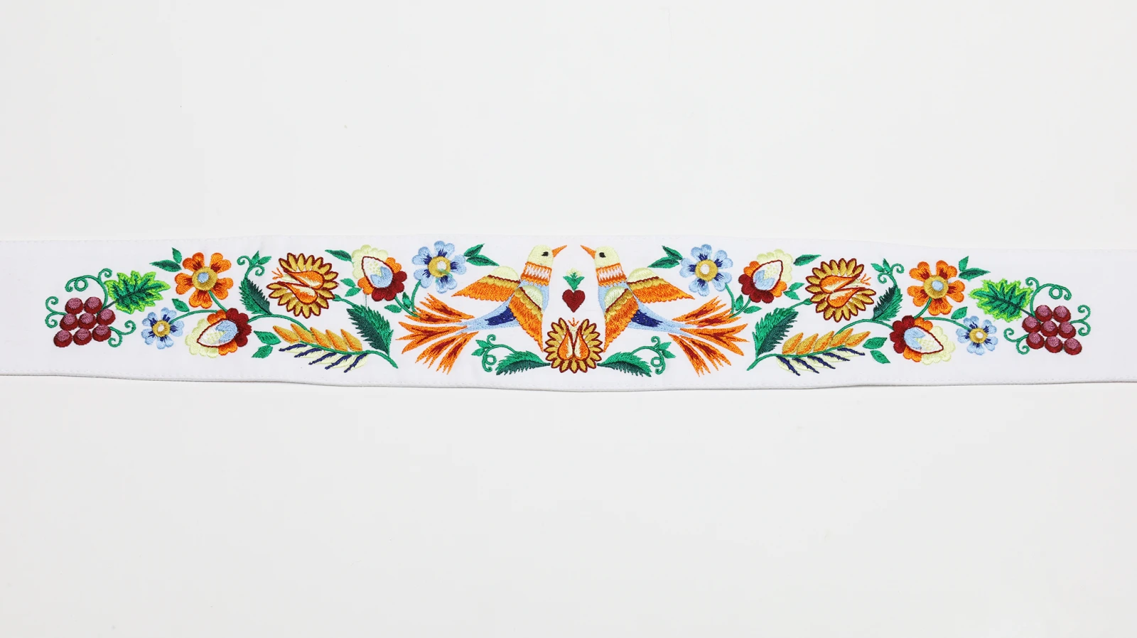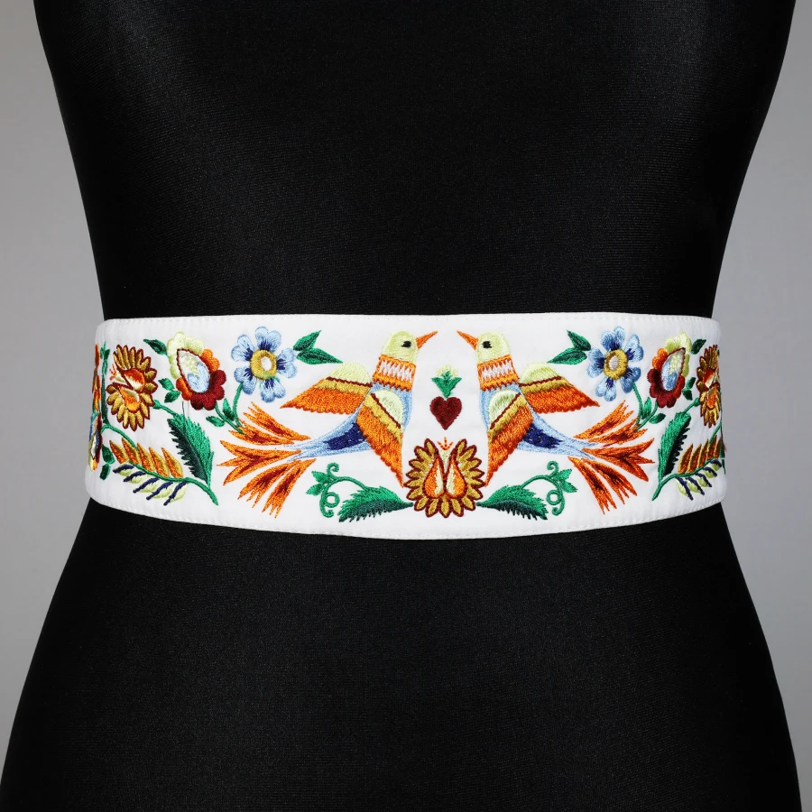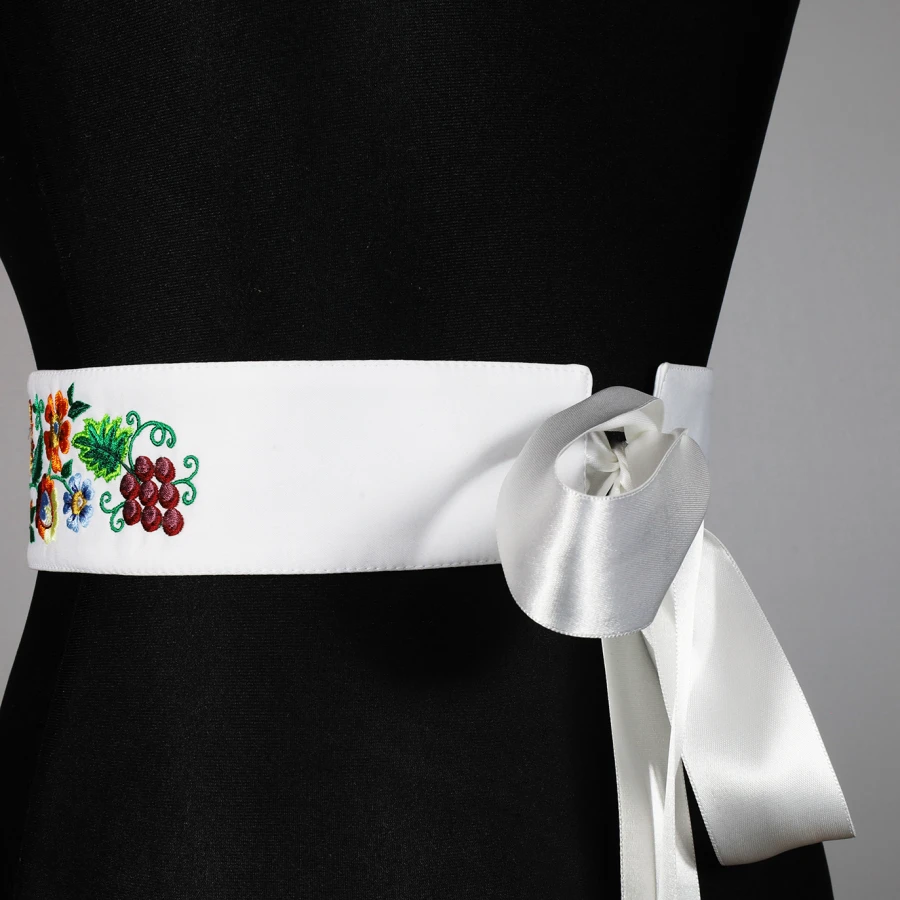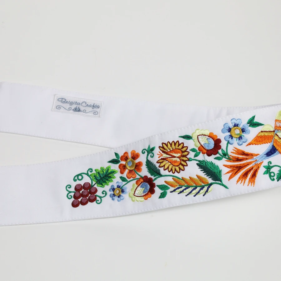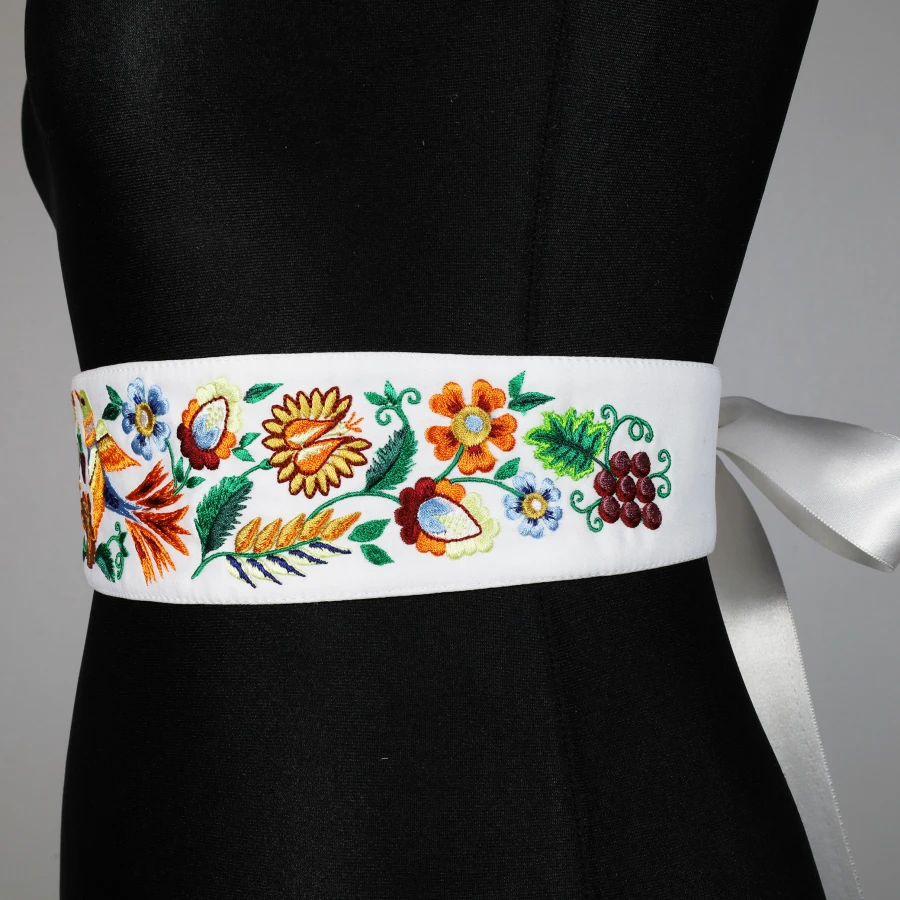Elegantný opasok v žiarivých jesenných farbách, vyšívaný kvalitnými viskózovými niťami.