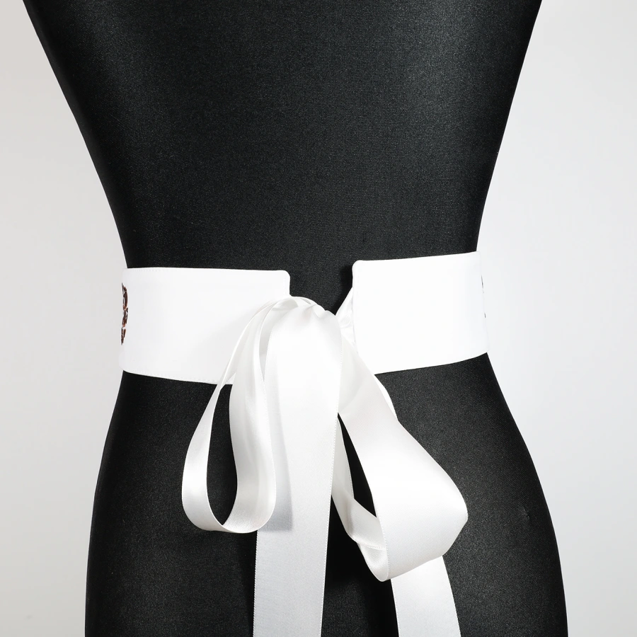 Vystužený, dĺžka 68cm, šírka 7cm, viazanie vzadu z oboch strán na stuhu 60cm x 4cm.