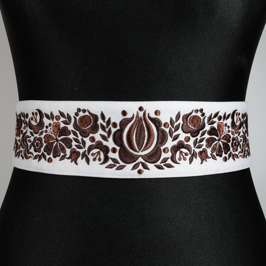 Dámsky folklórny vyšívaný opasok s kvetinovým vzorom.
